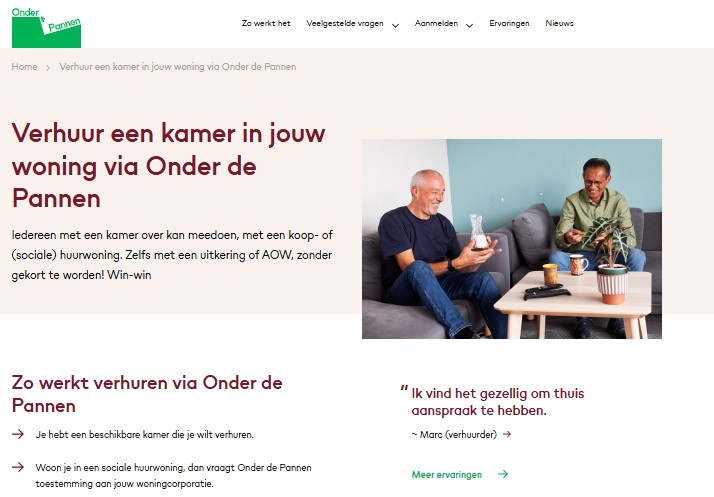 Aanmelden gaat eenvoudig via www.onderdepannen.nl. Creating Balance verzorgt de screening en de match, en regelt alle praktische zaken. Zo is alles goed geregeld voor zowel de huurder als de verhuurder.